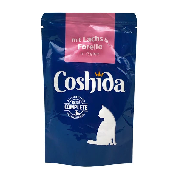 پوچ گربه بالغ کوشیدا (Coshida) در طعم ماهی سالمون و قزل آلا یکی از محبوب ترین طعم های این محصول با کیفیت است. این پوچها معمولاً غذای مرطوب با رطوبت بالا (حدود 50-80%) هستند که حاوی پروتئینهای باکیفیت، ویتامینها (A، D، E، B)، مواد معدنی (کلسیم، فسفات)، و اسیدهای آمینه مانند تائورین برای سلامت قلب و بینایی گربهها میباشند.
