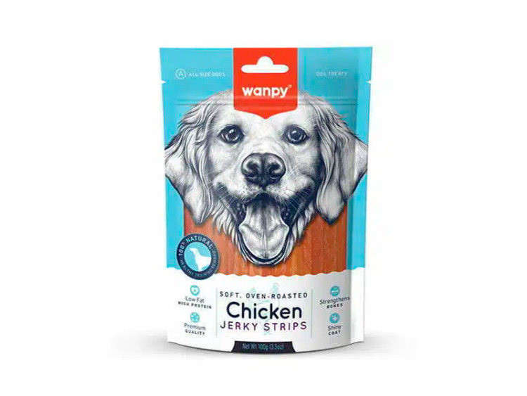 غذای تشویقی سگ ونپی (Wanpy) مدل Chicken Jerky Strips با وزن 100 گرم، یک تشویقی خوشطعم و مغذی حاوی گوشت مرغ است که چربی پایین و پروتئین بالا دارد، به هضم آسان کمک میکند و برای تقویت استخوانها و درخشندگی پوست و موی سگ مناسب است